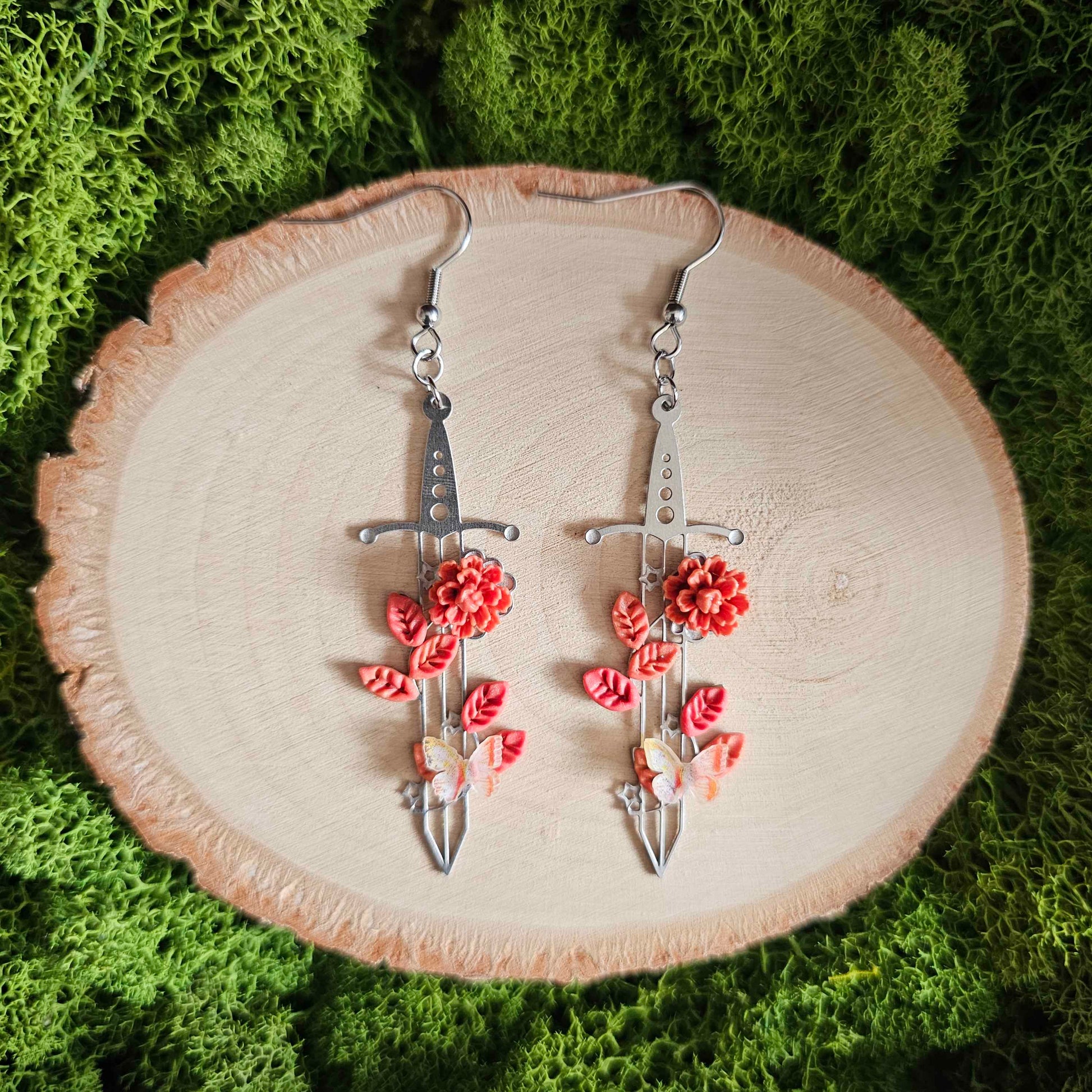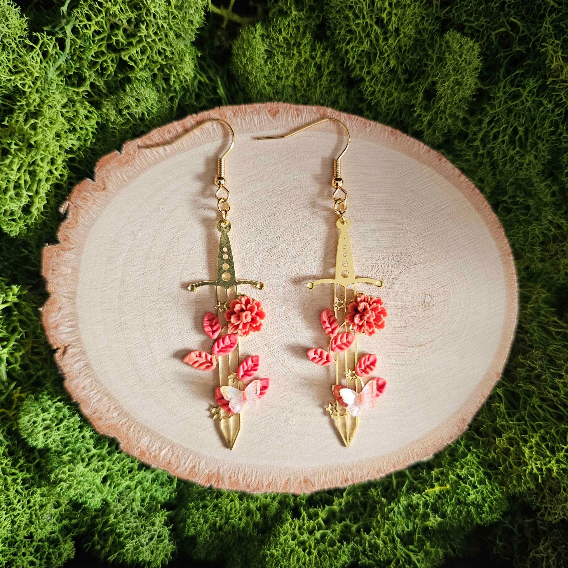 Autumn Floral Sword Handmade Clay Earrings