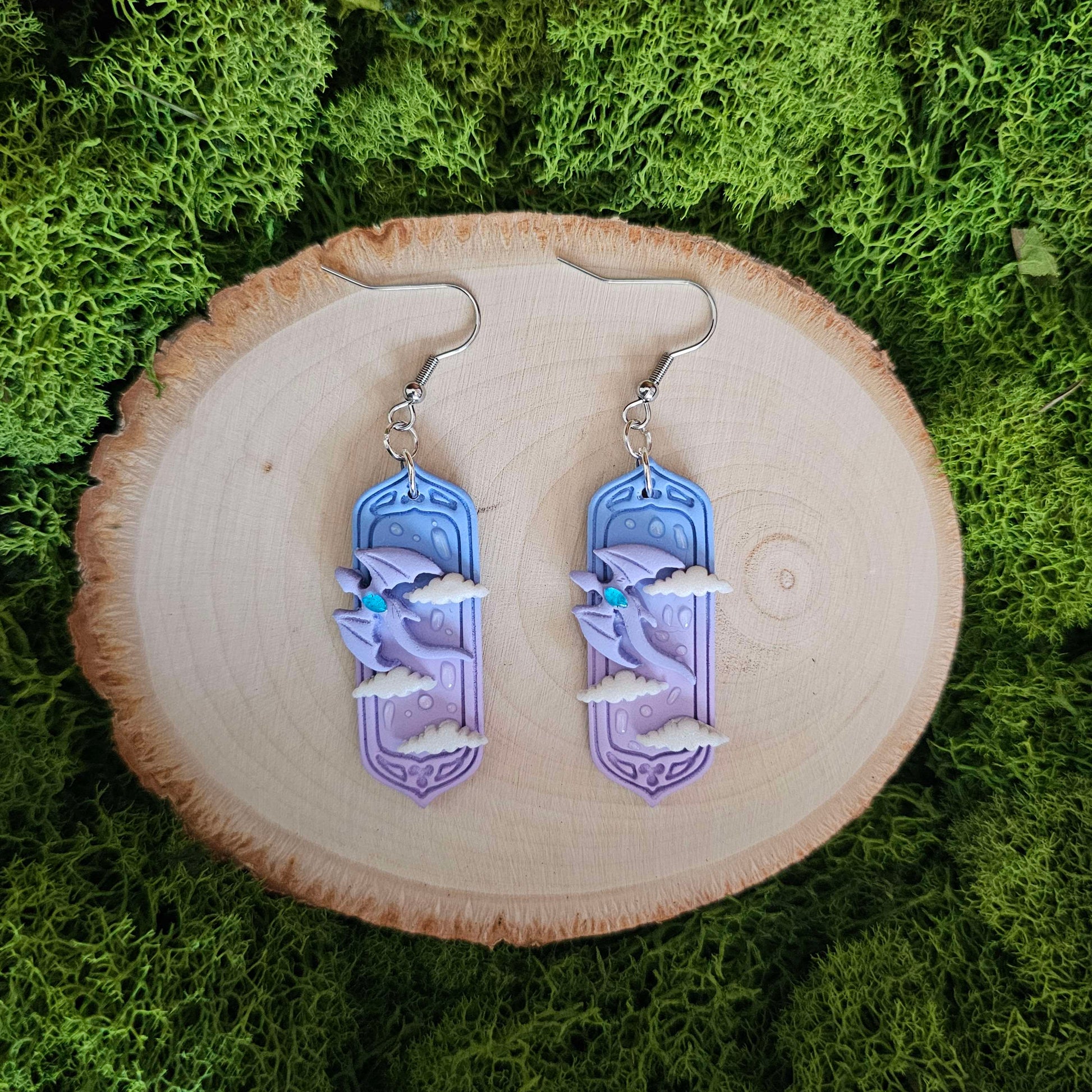 Fantasy Purple & Blue Dragon Handmade Clay Earrings