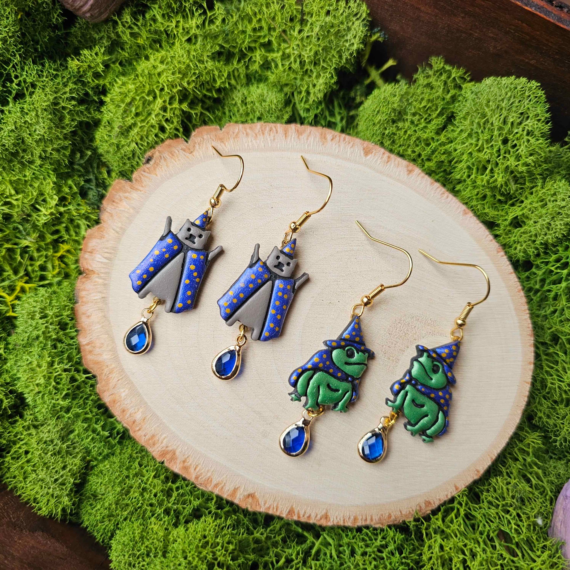 Wizard Frog and Wizard Cat Handmade Clay Earrings